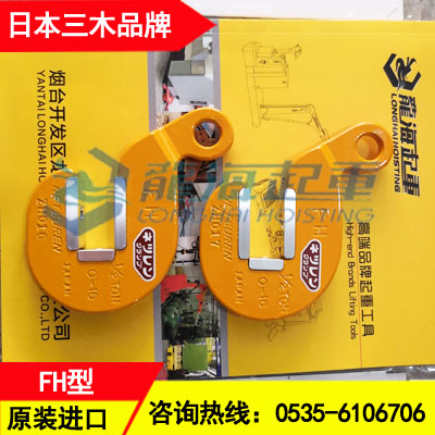 龙海起重原装进口:日本三木NETSUREN品牌无伤钢板钳,FH型、CH-NF型、FL-V型,钳口铝合金材质,可用于不锈钢板、铜板、铝板、压力容器、带油漆钢板、复合钢板、有色金属板等无划痕吊装以及要求无碳钢污染作业环境中!5倍安全系数!